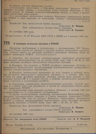 Главная Собрание законов и распоряжений правительства РСФСР и СССР Собрание законов и распоряжений Рабоче-Крестьянского Правительства ... Собрание узаконений и распоряжений Рабочего и Крестьянского правите... Собрание узаконений и распоряжений Рабоче-Крестьянского правительст... Документы Постановление Совета народных комиссаров. О всеобщем начальном обуч...