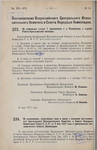 Собрание узаконений и распоряжений Рабоче-Крестьянского правительства РСФСР за 1927 г. № 55-124. Отдел первый. — М., Б. г.