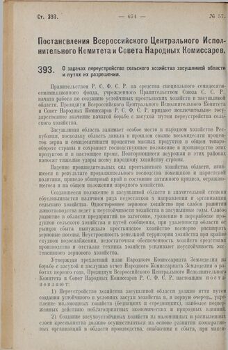 Постановление Всероссийского Центрального Исполнительного Комитета и Совета Народных Комиссаров. О задачах переустройства сельского хозяйства засушливой области и путях их разрешения. 21 июня 1927 г.