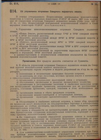 Постановление Всероссийского центрального исполнительного комитета и Совета народных комиссаров. Об управлении островами Северного ледовитого океана. 10 ноября 1929 г.