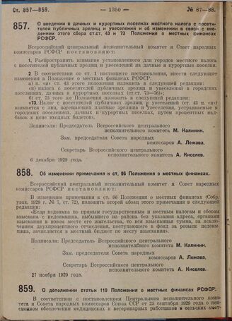 Постановление Всероссийского центрального исполнительного комитета и Совета народных комиссаров. О дополнении статьи 110 Положения о местных финансах РСФСР. 20 декабря 1929 г.