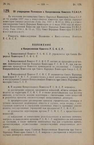 Постановление Совета Народных Комиссаров. Об утверждении Положения о Концессионном Комитете Р.С.Ф.С.Р. 25 января 1928 года