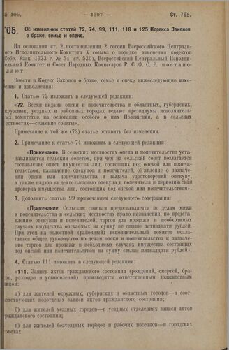 Постановление Всероссийского Центрального Исполнительного Комитета и Совета Народных Комиссаров. Об изменении статей 72, 74, 99, 111, 118 и 125 Кодекса Законов о браке, семье и опеке. 26 сентября 1927 г.