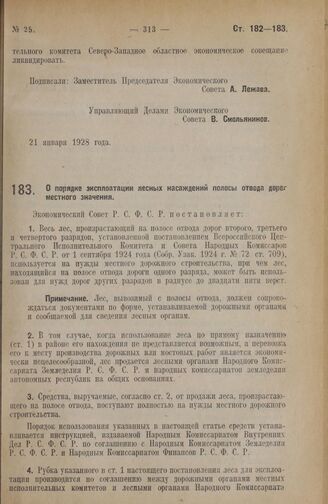 Постановление Экономического Совета. О порядке эксплоатации лесных насаждений полосы отвода дорог местного значения. 21 января 1928 года