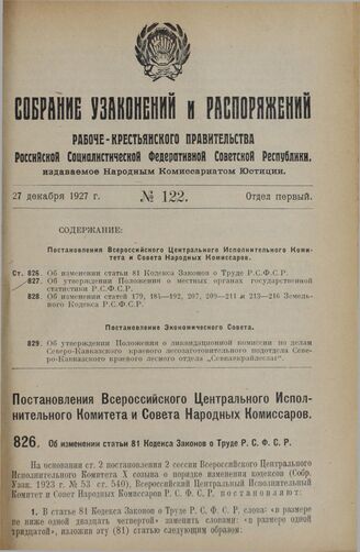 Собрание узаконений и распоряжений Рабоче-Крестьянского правительства РСФСР за 1927 г. № 55-124. Отдел первый. — М., Б. г.