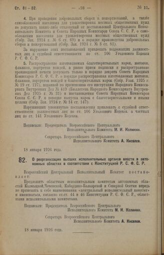 Декрет Всероссийского Центрального Исполнительного Комитета. О реорганизации высших исполнительных органов власти в автономных областях в соответствии с Конституцией Р.С.Ф.С.Р. 18 января 1926 года