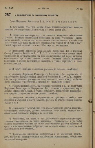 Декрет Совета Народных Комиссаров. О мероприятиях по жилищному хозяйству. 21 мая 1926 года
