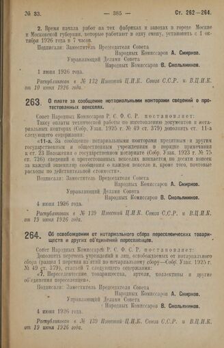Декрет Совета Народных Комиссаров. О плате за сообщение нотариальными конторами сведений о протестованных векселях. 4 июня 1926 года