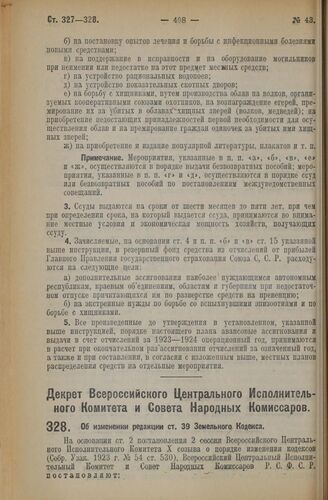 Декрет Всероссийского Центрального Исполнительного Комитета и Совета Народных Комиссаров. Об изменении редакции ст. 39 Земельного Кодекса. 28 июня 1926 года // Распубликован в № 174 Известий Ц.И.К. Союза С.С.Р. и В.Ц.И.К. от 31 июля 1926 года.