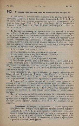 Постановление Всероссийского Центрального Исполнительного Комитета и Совета Народных Комиссаров. О порядке установления прав на промышленные предприятия. 8 октября 1928 года