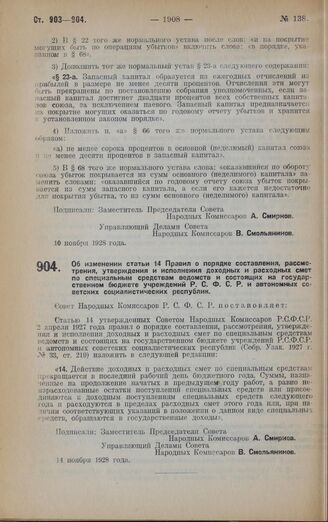 Постановление Совета Народных Комиссаров. Об изменении статьи 14 Правил о порядке составления, рассмотрения, утверждения и исполнения доходных и расходных смет по специальным средствам ведомств и состоящих на государственном бюджете учреждений Р.С...