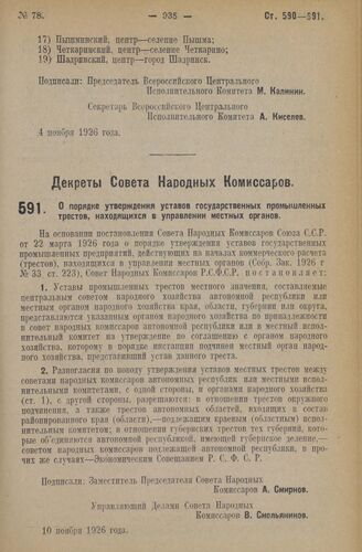 Главная Собрание законов и распоряжений правительства РСФСР и СССР Собрание законов и распоряжений Рабоче-Крестьянского Правительства ... Собрание узаконений и распоряжений Рабочего и Крестьянского правите... Собрание узаконений и распоряжений Рабоче-Крестьянского правительст... Документы Декрет Совета Народных Комиссаров. О порядке утверждения уставов го...