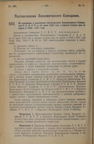 Постановление Экономического Совещания. Об изменении и дополнении постановления Экономического Совещания Р.С.Ф.С.Р. от 24 июля 1926 года о порядке отпуска леса на корню в 1926—1927 году. 30 октября 1926 года