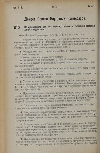 Главная Собрание законов и распоряжений правительства РСФСР и СССР Собрание законов и распоряжений Рабоче-Крестьянского Правительства ... Собрание узаконений и распоряжений Рабочего и Крестьянского правите... Собрание узаконений и распоряжений Рабоче-Крестьянского правительст... Документы Декрет Совета Народных Комиссаров. Об учреждениях для глухонемых, с...