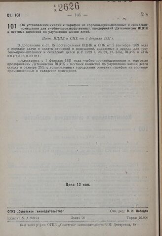 Собрание узаконений и распоряжений Рабоче-Крестьянского правительства РСФСР за 1931 г. № 1-8. Отдел первый. — М.: Сов. законодательство, б. г.
