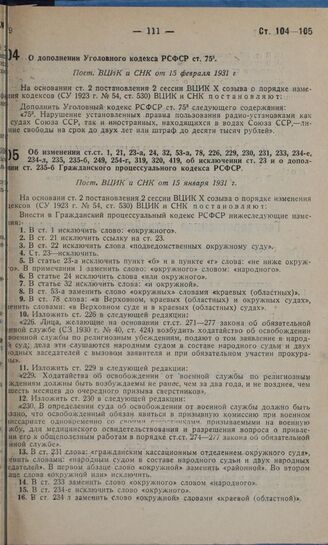 Главная Собрание законов и распоряжений правительства РСФСР и СССР Собрание законов и распоряжений Рабоче-Крестьянского Правительства ... Собрание узаконений и распоряжений Рабочего и Крестьянского правите... Собрание узаконений и распоряжений Рабоче-Крестьянского правительст... Документы Об изменении ст.ст. 1, 21, 23-а, 24, 32, 53-а, 78, 226, 229, 230, 2...