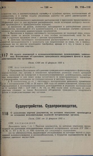 О дополнении перечня документов, по которым взыскание производится на основании исполнительных надписей нотариальных органов. Пост. СНК от 21 февраля 1931 г.