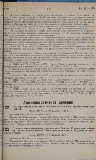 О перечислении территории сада при селе Сашино, Игнатовского района, из Тепло-станского района, Нижегородского края, в Мордовскую автономную область. Пост. ВЦИК от 6 февраля 1931 г.