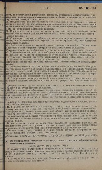 Об утверждении Положения о районных съездах советов и районных исполнительных комитетах. Пост. ВЦИК от 1 января 1931 г.