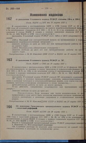 О дополнении Уголовного кодекса РСФСР статьями 128-а и 128-б. Пост. ВЦИК и СНК от 20 марта 1931 г. // Распубликовано в № 86 Известий ЦИК СССР и ВЦИК от 28 марта 1931 г.