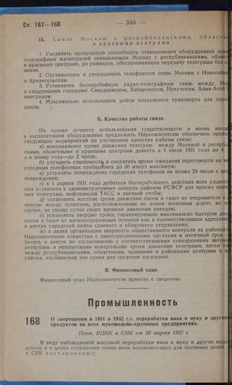 О запрещении в 1931 и 1932 г.г. переработки вики в муку и другие виды продуктов на всех мукомольно-крупяных предприятиях. Пост. ВЦИК и СНК от 20 марта 1931 г.