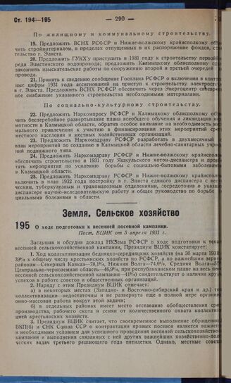 О ходе подготовки к весенней посевной кампании. Пост. ВЦИК от 5 апреля 1931 г. // Распубликовано в № 97 Известий ЦИК СССР и ВЦИК от 8 апреля 1931 г.