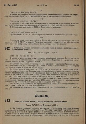 О льготах населению автономной области Коми в связи с десятилетием существования области. Пост. СНК от 11 августа 1931 г.
