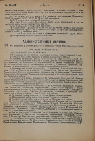 Об изменении в составе районов и районных границ Нижегородского края. Пост. ВЦИК 20 января 1932 г.