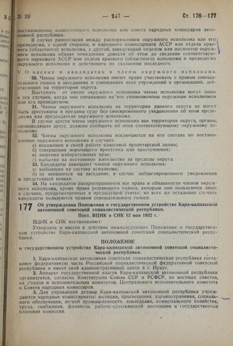 Об утверждении Положения о государственном устройстве Кара-калпакской автономной советской социалистической республики. Пост. ВЦИК и СНК 12 мая 1932 г.