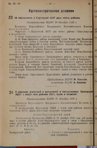 Об образовании в Киргизской АССР двух новых районов. Постановление ВЦИК 20 декабря 1936 г.