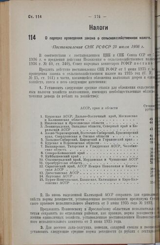 О порядке проведения закона о сельскохозяйственном налоге. Постановление СНК РСФСР 23 июля 1936 г.