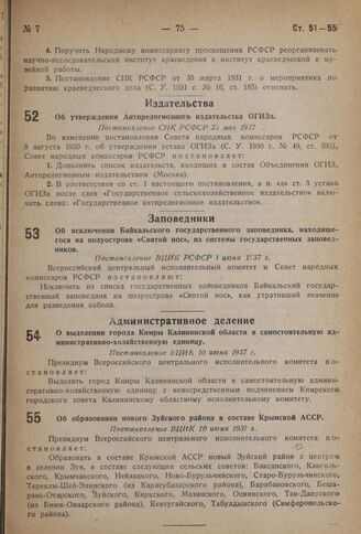 Собрание узаконений и распоряжений Рабоче-Крестьянского правительства РСФСР за 1937 г. № 1-14. — М.: Юридич. изд-во НКЮ СССР, 1937.