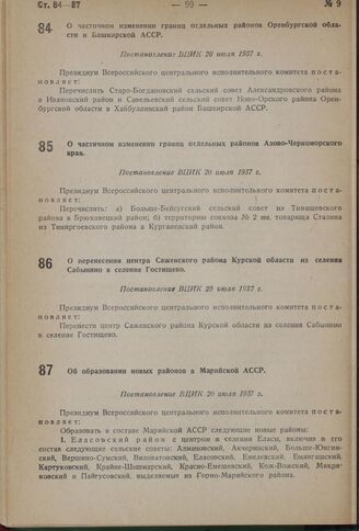 О перенесении центра Саженского района Курской области из селения Сабынино в селение Гостищево. Постановление ВЦИК 20 июля 1937 г.