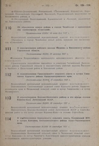 О переименовании Ганштаковского сельского совета и хутора Ганштаково Курского района Орджоникидзевского края. Постановление ВЦИК 10 сентября 1937 г.