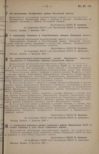 Постановление Всероссийского центрального исполнительного комитета. О ликвидации Агинского и Улан-Ононского аймаков Читинской области. 2 февраля 1938 г.