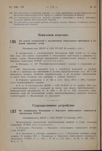 Собрание узаконений и распоряжений Рабоче-Крестьянского правительства РСФСР за 1937 г. № 1-14. — М.: Юридич. изд-во НКЮ СССР, 1937.
