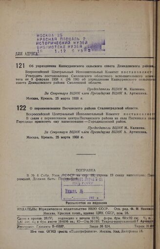 Собрание узаконений и распоряжений Рабоче-Крестьянского правительства РСФСР за 1938 г. № 1-12. — М.: Юридич. изд-во НКЮ СССР, 1938.