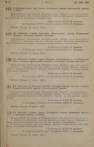 Постановление Всероссийского центрального исполнительного комитета. О преобразовании села Любим Любимского района Ярославской области в город. 20 апреля 1938 г.