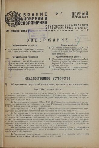 Главная Собрание законов и распоряжений правительства РСФСР и СССР Собрание законов и распоряжений Рабоче-Крестьянского Правительства ... Собрание узаконений и распоряжений Рабочего и Крестьянского правите... Собрание узаконений и распоряжений Рабоче-Крестьянского правительст... Документы Об организации управлений птицеводства, кролиководства и пчеловодст...