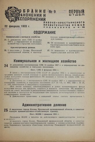 Главная Собрание законов и распоряжений правительства РСФСР и СССР Собрание законов и распоряжений Рабоче-Крестьянского Правительства ... Собрание узаконений и распоряжений Рабочего и Крестьянского правите... Собрание узаконений и распоряжений Рабоче-Крестьянского правительст... Документы О дополнении постановления СНК 15 ноября 1927 г. о мероприятиях по ...