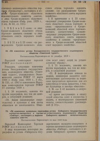 Об изменении устава Экскурсионного государственного акционерного общества «Советский турист». Постановление Наркомторга от 30 декабря 1929 г.