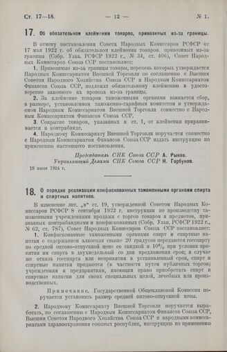 Главная Собрание законов и распоряжений правительства РСФСР и СССР Собрание законов и распоряжений Рабоче-Крестьянского Правительства ... Собрание законов и распоряжений Рабоче-Крестьянского Правительства ... Документы Постановление Совета Народных Комиссаров. О порядке реализации конф...