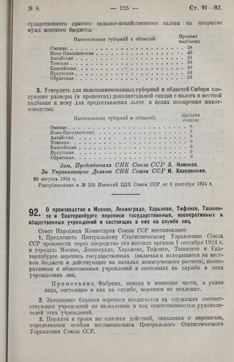 Главная Собрание законов и распоряжений правительства РСФСР и СССР Собрание законов и распоряжений Рабоче-Крестьянского Правительства ... Собрание законов и распоряжений Рабоче-Крестьянского Правительства ... Документы Постановление Совета Народных Комиссаров. О производстве в Москве, ...