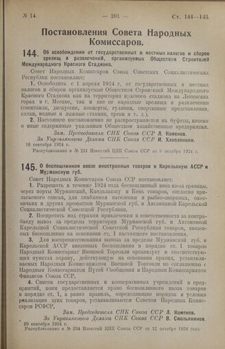 Главная Собрание законов и распоряжений правительства РСФСР и СССР Собрание законов и распоряжений Рабоче-Крестьянского Правительства ... Собрание законов и распоряжений Рабоче-Крестьянского Правительства ... Документы Постановление Совета Народных Комиссаров. Об освобождении от госуда...
