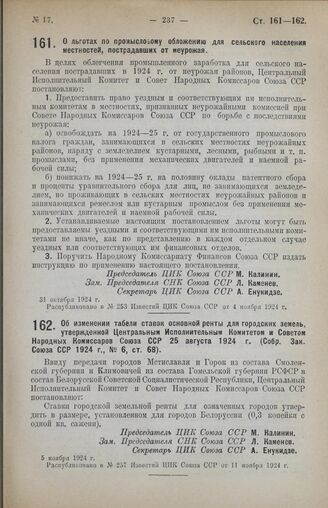 Постановление Центрального Исполнительного Комитета и Совета Народных Комиссаров Союза ССР. Об изменении табели ставок основной ренты для городских земель, утвержденной Центральным Исполнительным Комитетом и Советом Народных Комиссаров Союза ССР 2...