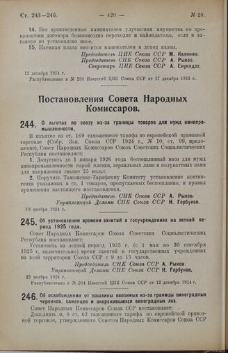 Главная Собрание законов и распоряжений правительства РСФСР и СССР Собрание законов и распоряжений Рабоче-Крестьянского Правительства ... Собрание законов и распоряжений Рабоче-Крестьянского Правительства ... Документы Постановление Совета Народных Комиссаров. О льготах по ввозу из-за ...