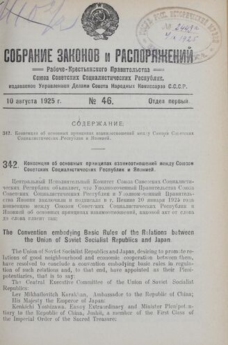 Конвенция об основных принципах взаимоотношений между Союзом Советских Социалистических Республик и Японией. 27 марта 1925 г.