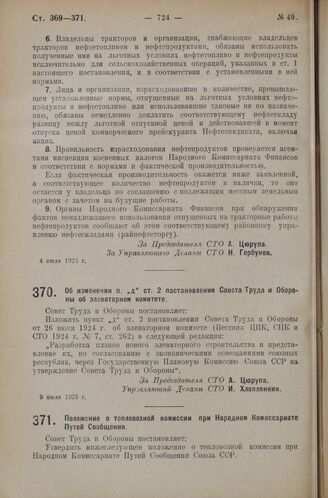 Постановление Совета Труда и Обороны. Положение о тепловозной комиссии при Народном Комиссариате Путей Сообщения. 15 июля 1925 г.