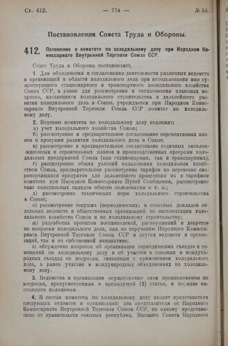 Постановление Совета Труда и Обороны. Положение о комитете по холодильному делу при Народном Комиссариате Внутренней Торговли Союза ССР. 20 июля 1925 г.