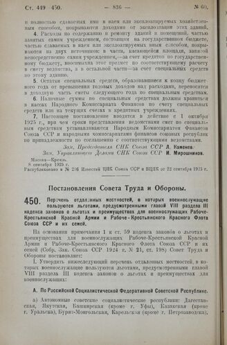 Постановление Совета Труда и Обороны. Перечень отдаленных местностей, в которых военнослужащие пользуются льготами, предусмотренными главой VIII раздела III кодекса законов о льготах и преимуществах для военнослужащих Рабоче-Крестьянской Красной А...